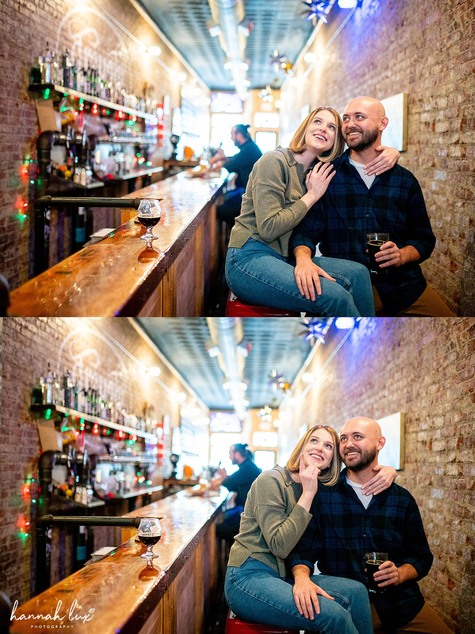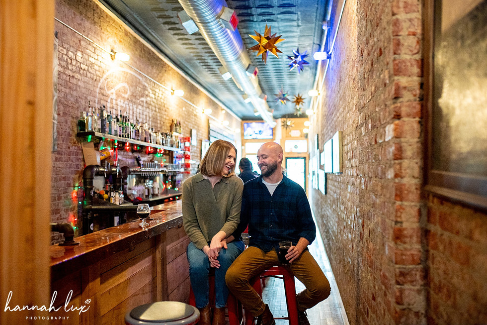 On a Thursday night in November, just before heading down to Long Island for a family session & proposal, I made my way to Beacon, NY for a funky bar/movie theatre session with these two. I hadn't met them in person yet, but we had been introduced by Chris's brother, had Zoomed to get to know each other, and had shared many an excited text about our upcoming session. When I walked through the door of Draught Industries and saw their cute smiling faces, it felt like we'd known each other for years.
