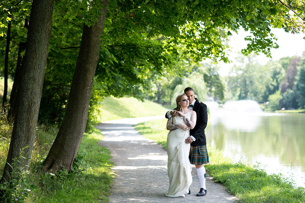 We went to Washington Park to do the first look with Cian and then meet up with their three pups! I feel like at every turn there was one more beautiful thing about this wedding that I was obsessed with - dreamy hair & makeup, that bouquet, the kilt, DOGS, beautiful crepe beaded dresses, sage, super meaningful intimate ceremony.... the list goes on but I think the best part was the love they so obviously share with each other!