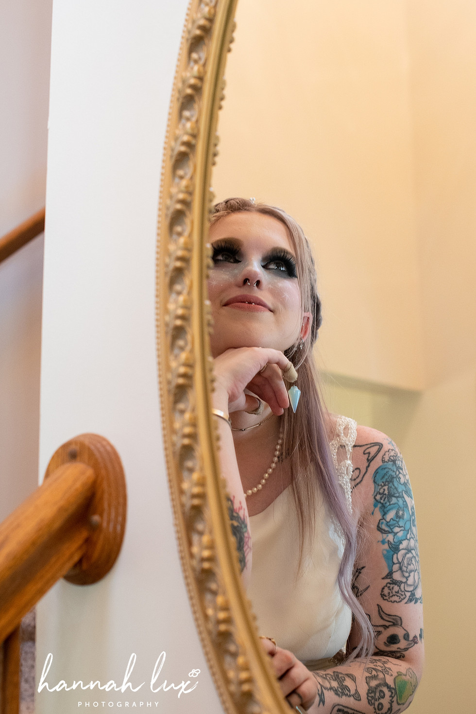 Let's start off with how I know Tessa - we went to high school together, and she has been a longtime follower of my work online. I absolutely love when a connection I already know reaches out for coverage on their special day! Not only that, but we really need to discuss her bridal LOOK (a la Indigo Makeup Artistry). Wow - I was so excited when I saw a sneak peek of her makeup trial, and even more excited when I showed up the day of to see that her makeup and hair were done up in the most dreamy, etherial and glamorous bridal look ever! She was seriously serving me so many Khaleesi / goddess / night elf vibes and I'm so happy we were able to do some *dramatic* ring light photos to highlight her striking natural beauty paired with incredible makeup & hair.